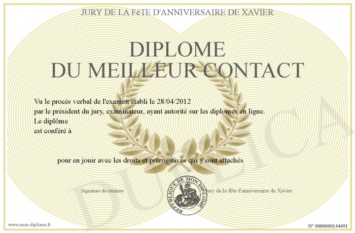 Envoyez par email votre Diplôme du meilleur contact personalisé