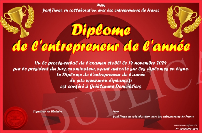 Envoyez par email votre Diplôme de l'entrepreneur de l'année personalisé