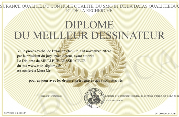 Envoyez par email votre Diplôme du MEILLEUR DESSINATEUR personalisé