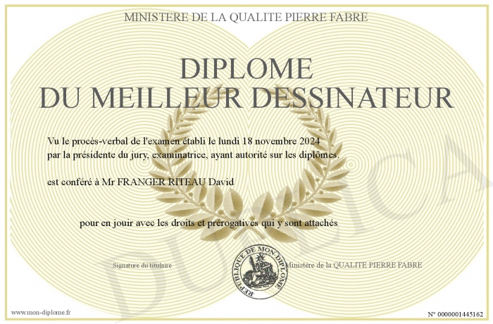 Envoyez par email votre Diplôme du MEILLEUR DESSINATEUR personalisé