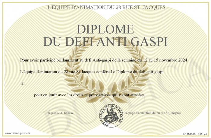 Envoyez par email votre Diplôme du défi anti gaspi personalisé
