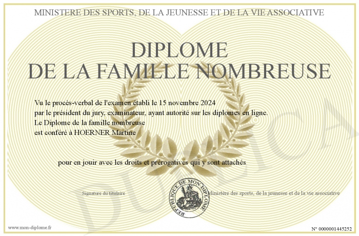 Envoyez par email votre Diplôme de la famille nombreuse personalisé