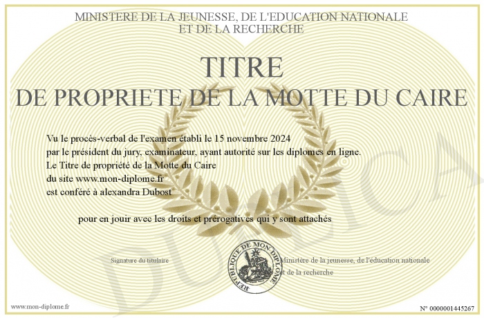 Envoyez par email votre Titre de propriété de la Motte du Caire personalisé