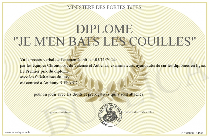 • Diplôme -Je m'en bats les couilles-