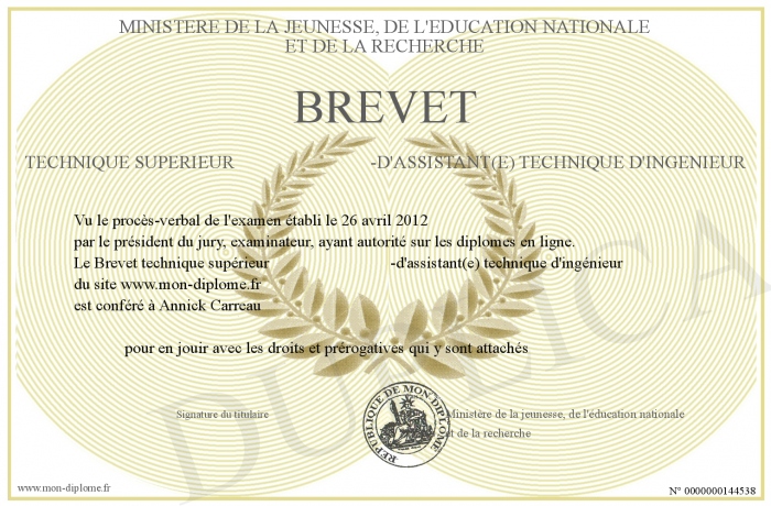 Envoyez par email votre Brevet technique supérieur -d'assistant(e) technique d'ingénieur personalisé