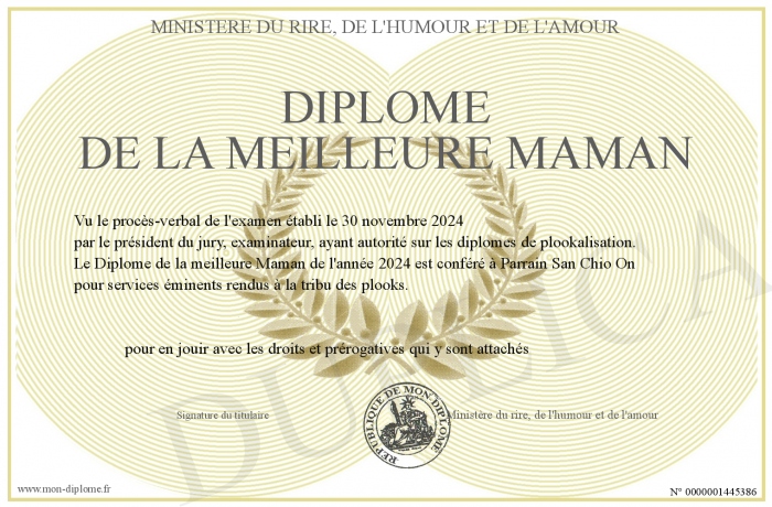 Envoyez par email votre Diplome de la meilleure Maman personalisé