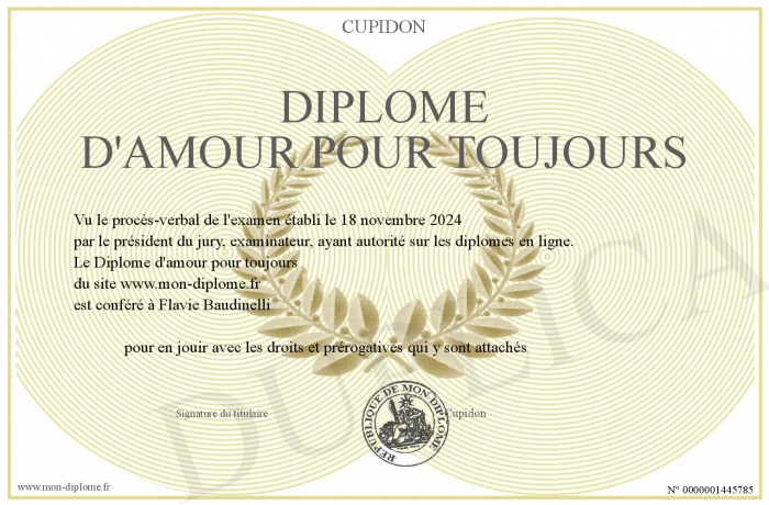 Envoyez par email votre Diplôme d'amour pour toujours personalisé