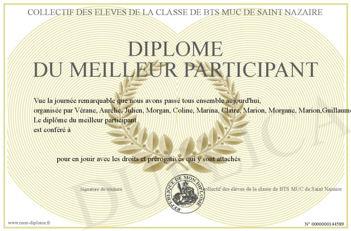 Envoyez par email votre diplôme du meilleur participant personalisé