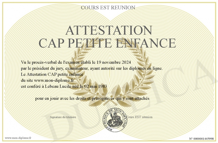 Envoyez par email votre Attestation CAP petite enfance personalisé