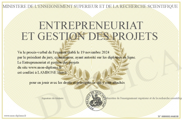 Envoyez par email votre Entrepreneuriat et gestion des projets personalisé