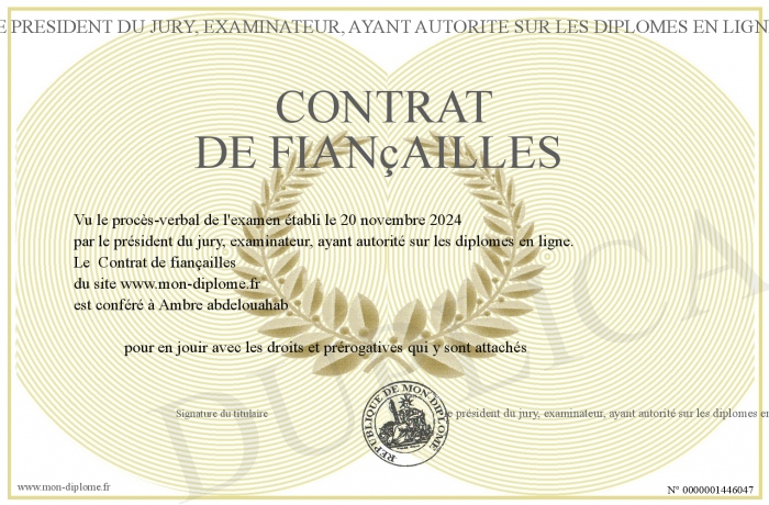 Envoyez par email votre Contrat de fiançailles personalisé