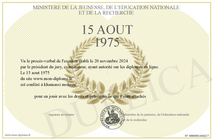 Envoyez par email votre 15 aout 1975 personalisé