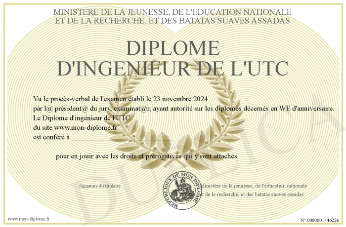 Envoyez par email votre Diplôme d'ingénieur de l'UTC personalisé
