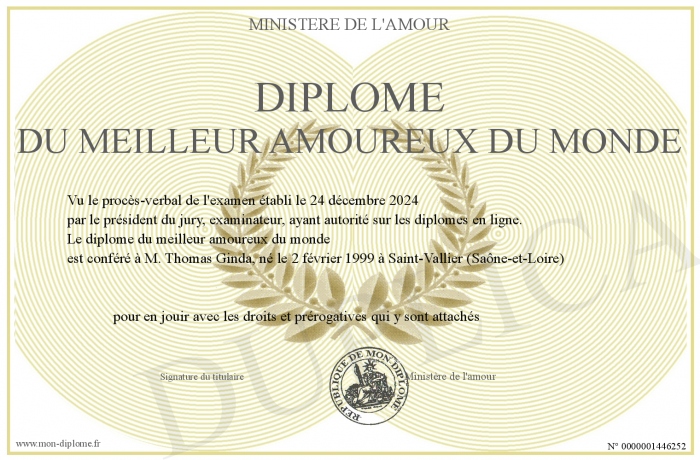 Envoyez par email votre diplôme du meilleur amoureux du monde personalisé
