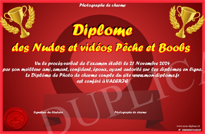 Envoyez par email votre Diplôme des Nudes et vidéos Pêche et Boobs personalisé