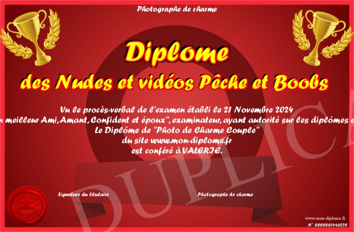 Envoyez par email votre Diplôme des Nudes et vidéos Pêche et Boobs personalisé