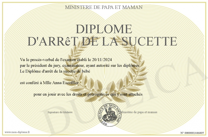 Envoyez par email votre Diplôme d'arrêt de la sucette personalisé