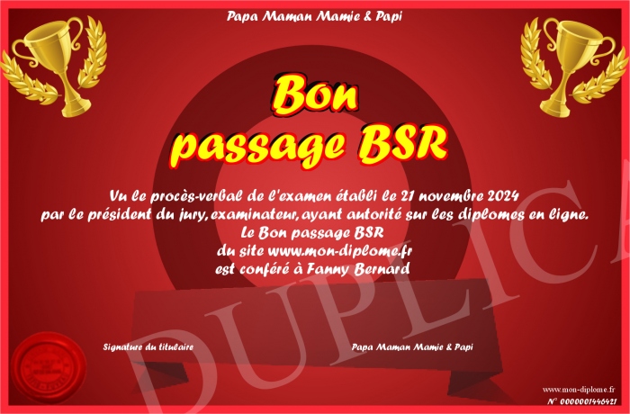 Envoyez par email votre Bon passage BSR personalisé