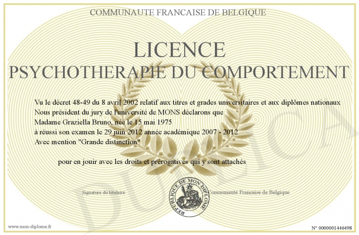 Envoyez par email votre Licence Psychothérapie du Comportement personalisé