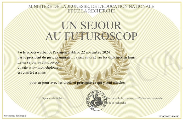 Envoyez par email votre un sejour au futuroscop personalisé