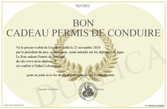 Envoyez par email votre Bon cadeau Permis de conduire personalisé