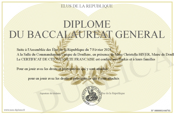Envoyez par email votre Diplôme du baccalaureat général personalisé