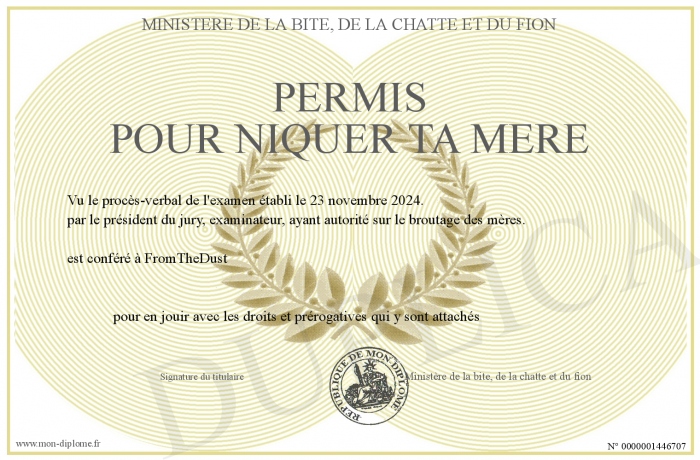 Envoyez par email votre Permis pour niquer ta mère personalisé