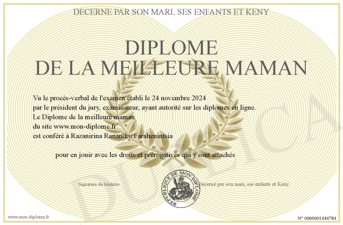 Envoyez par email votre Diplôme de la meilleure maman personalisé