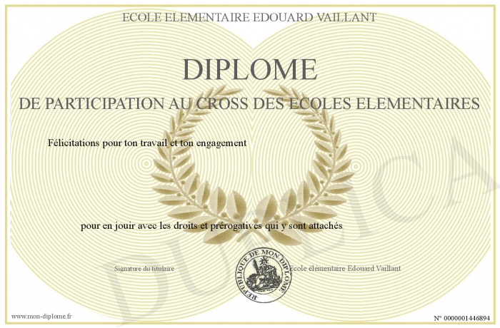 Envoyez par email votre Diplôme de participation au cross des écoles élémentaires personalisé