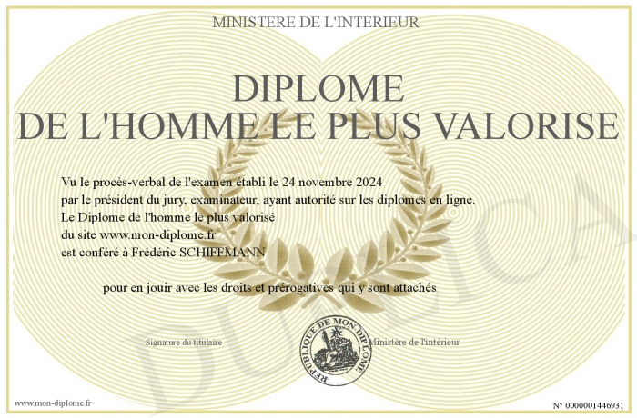 Envoyez par email votre Diplôme de l'homme le plus valorisé personalisé