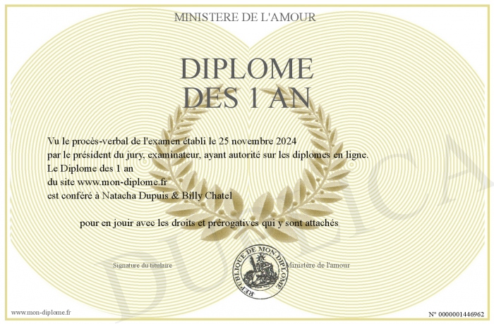 Envoyez par email votre Diplôme des 1 an personalisé
