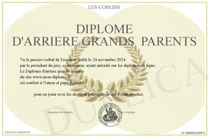 Envoyez par email votre Diplôme d'arrière grands parents personalisé
