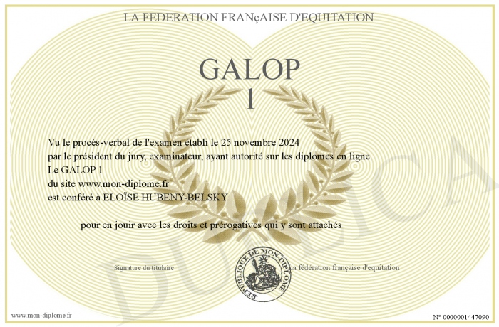 Envoyez par email votre GALOP 1 personalisé