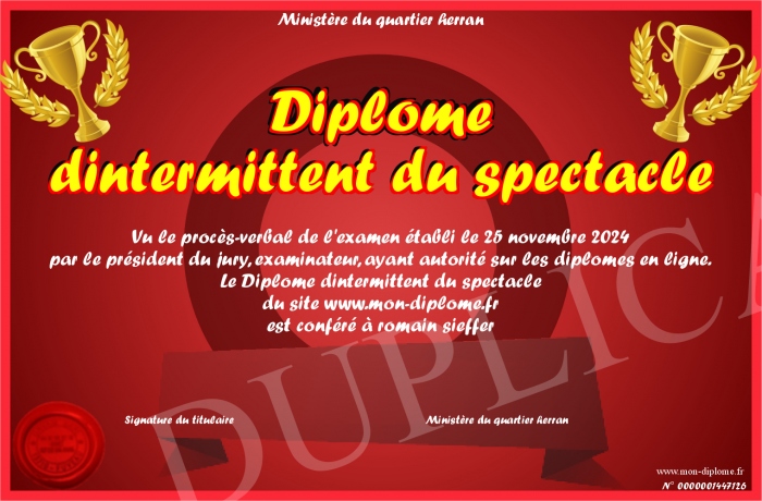 Envoyez par email votre Diplôme dintermittent du spectacle personalisé