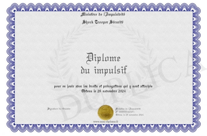 Envoyez par email votre Diplôme du impulsif personalisé