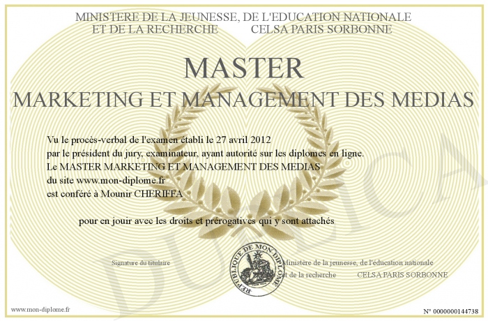 Envoyez par email votre MASTER MARKETING ET MANAGEMENT DES MEDIAS personalisé