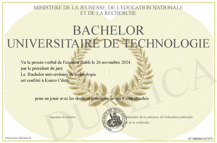 Envoyez par email votre Bachelor universitaire de technologie personalisé