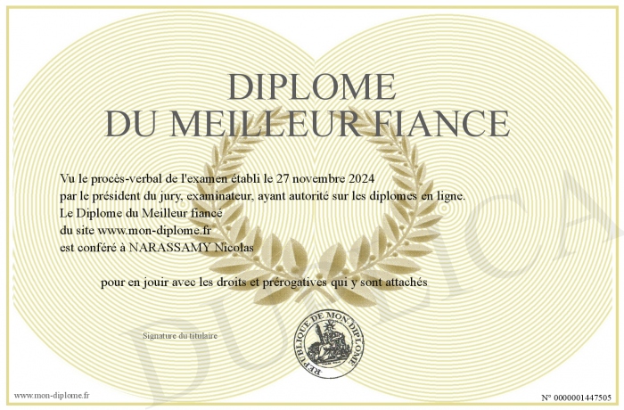 Envoyez par email votre Diplôme du Meilleur fiancé personalisé