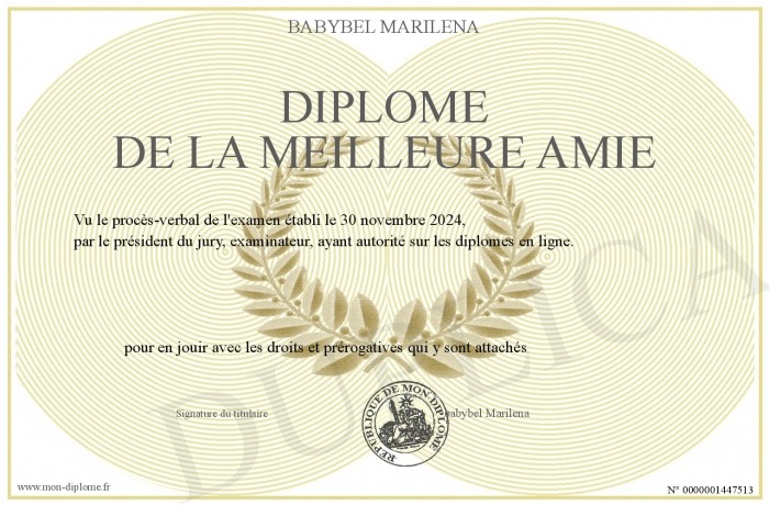 Envoyez par email votre diplôme de la meilleure amie personalisé