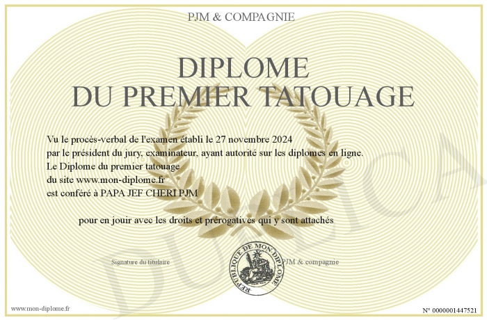 Envoyez par email votre Diplôme du premier tatouage personalisé