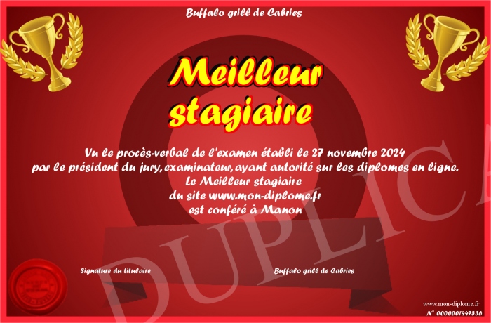 Envoyez par email votre Meilleur stagiaire personalisé