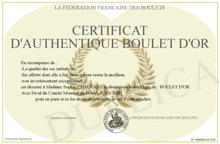 • CERTIFICAT D'AUTHENTIQUE BOULET D'OR