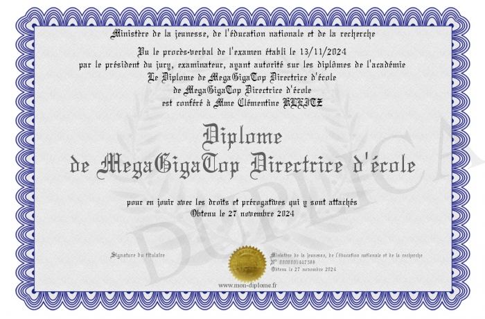 Envoyez par email votre Diplôme de MegaGigaTop Directrice d'école personalisé