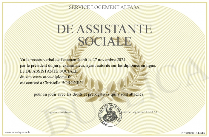 Envoyez par email votre DE ASSISTANTE SOCIALE personalisé
