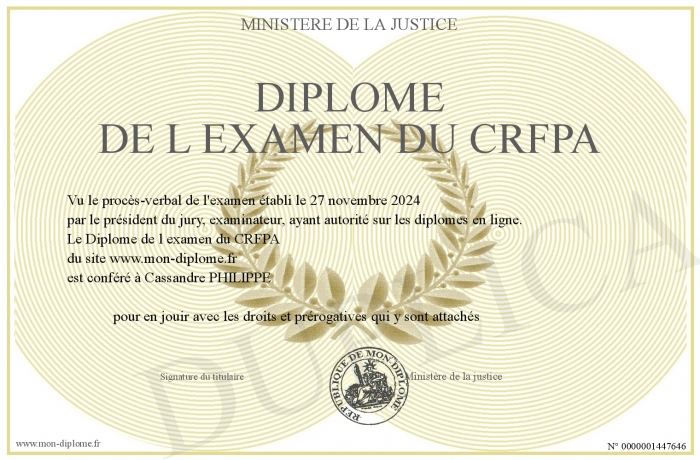 Envoyez par email votre Diplôme de l examen du CRFPA personalisé