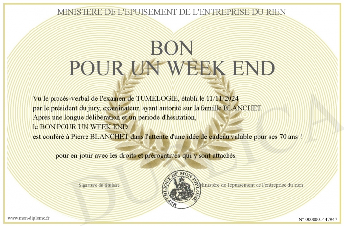 Envoyez par email votre BON POUR UN WEEK END personalisé