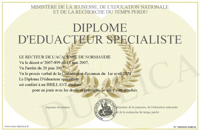 Envoyez par email votre Diplôme D'éduacteur spécialiste personalisé