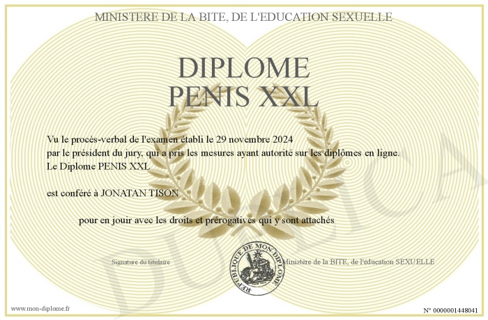 Envoyez par email votre Diplôme PENIS XXL personalisé