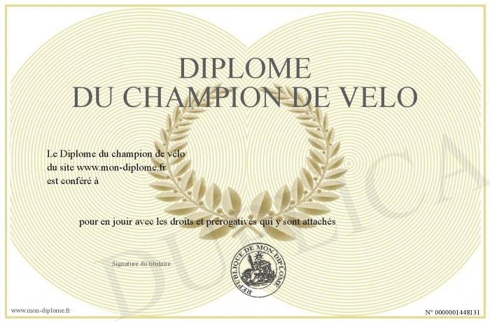 Envoyez par email votre Diplôme du champion de vélo personalisé