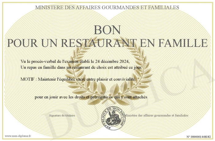 Envoyez par email votre BON POUR UN RESTAURANT EN FAMILLE personalisé